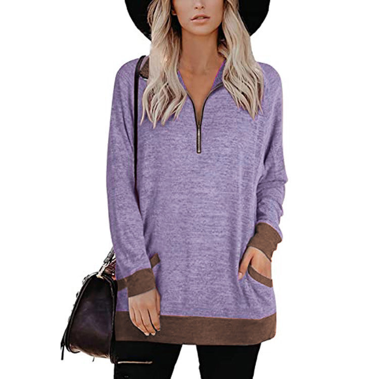 T-shirt Contrasté à Col Montant Zippé avec Poches : Modernité et Praticité !