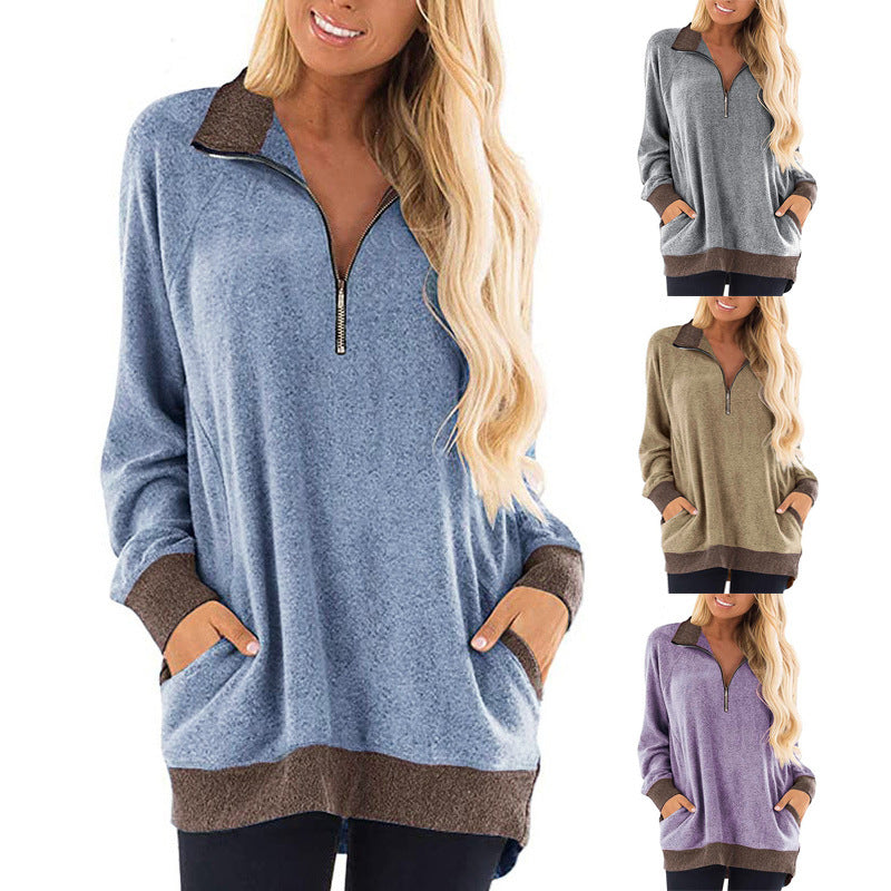 Un look unique : Adoptez une allure élégante et décontractée avec ce T-shirt contrasté à col montant, manches longues, parfait pour toutes les saisons.
